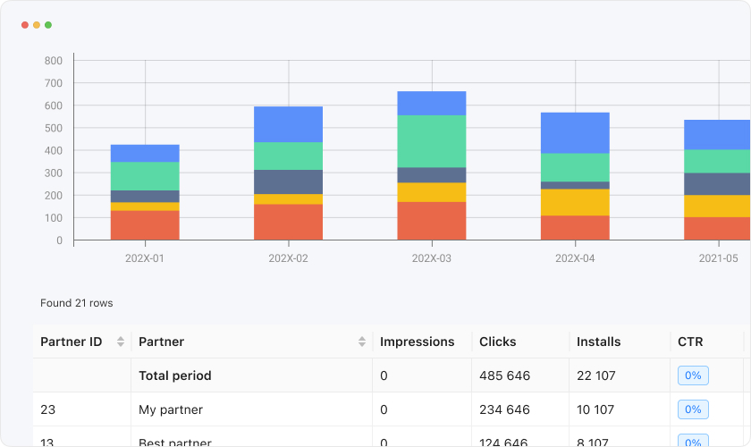 You can't optimize what you can't see. Fragmented data from various ad networks, subscription platforms and monetization partners makes true ROI analysis impossible. Affise breaks down these data silos by connecting all your cost, revenue and attribution data points into one centralized, accurate and real-time dashboard.